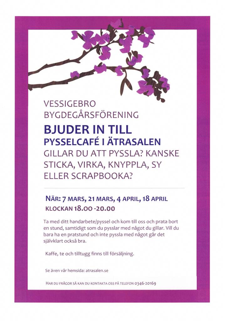 Pysselcafé på måndag! Publicerat avatrasalen4 mars, 2022Publicerad iOkategoriserade Dela detta: Klicka för att dela på X (Öppnas i ett nytt fönster) X Klicka för att dela på Facebook (Öppnas i ett nytt fönster) Facebook Gilla Laddar in … Relaterade